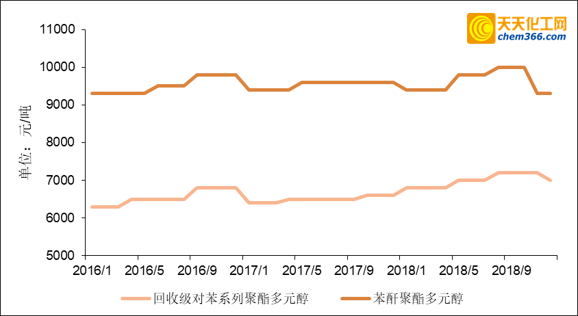 在過去三年,苯酐聚酯多元醇市場整體價格波動較小;而出于各廠家產品原料及性能的不同,廠家間不同牌號產品價格差異較大。當前苯酐聚酯多元醇主流報價在9300-10000元/噸,部分高端在13000元/噸及以上。